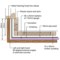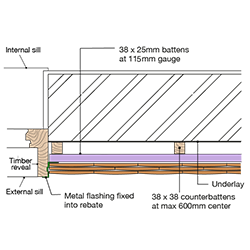 Note: If counterbattens are used, these need only be minimum 6mm deep when fixed to timber framing.