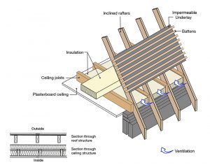 Roof structure – insulation at rafter with impermeable underlay