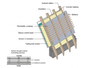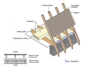 Roof structure – insulation at rafter with permeable underlay